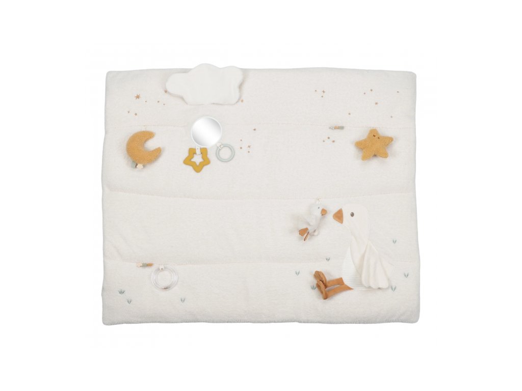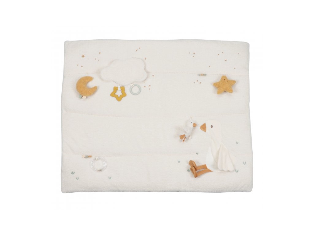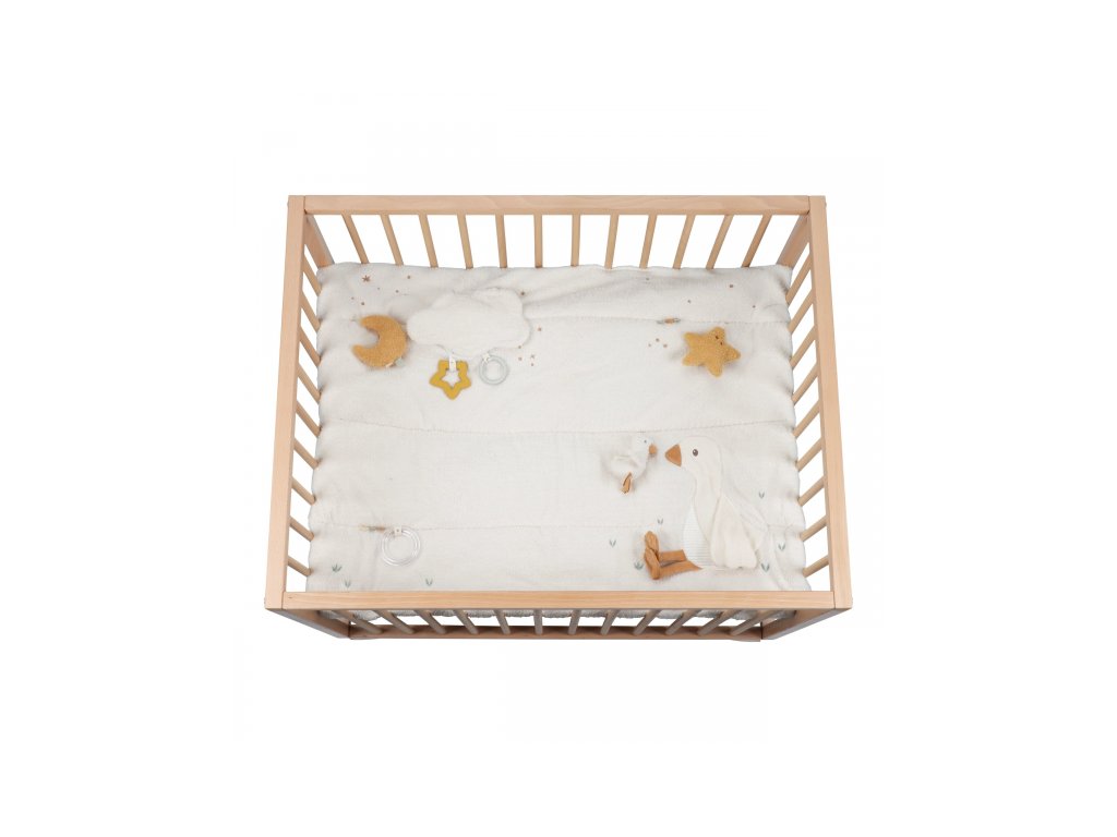 - Interaktívne postavičky: Na deke nájdete plyšovú hus s husátkom, ktoré si bábätko hneď obľúbi.
