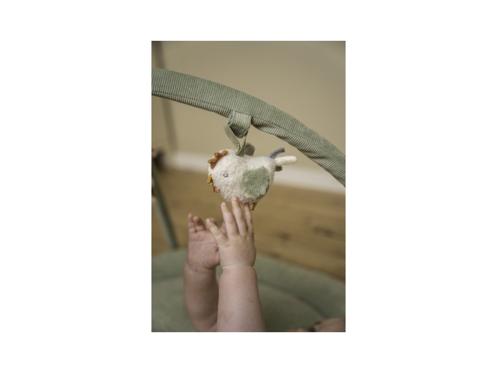 - Senzorické podnety: Hračky na hrazde hrkajú, šuštia a pískajú, čím okamžite upútajú pozornosť dieťaťa a rozvíjajú jeho sluch.