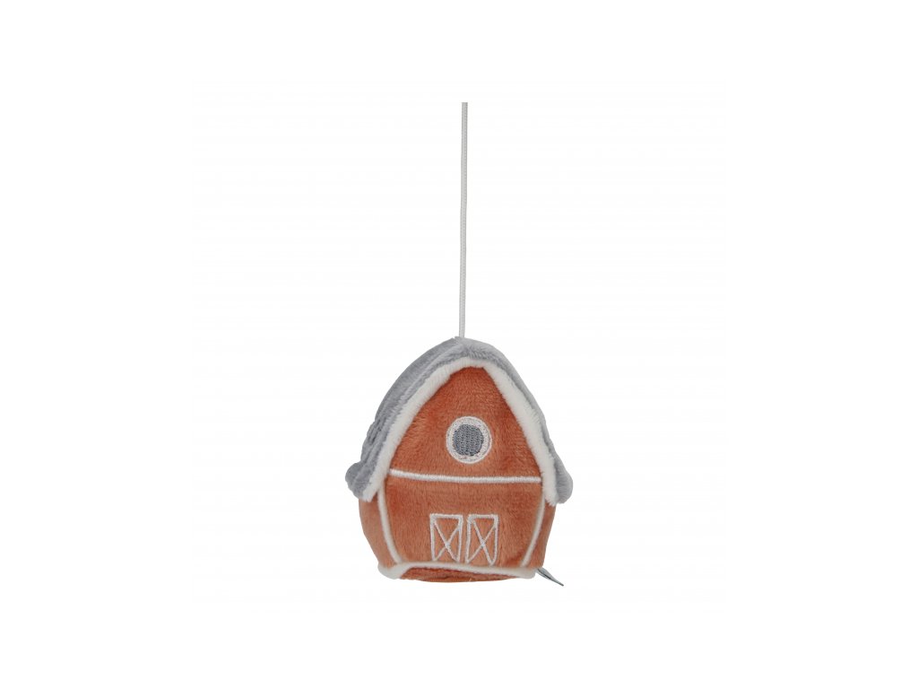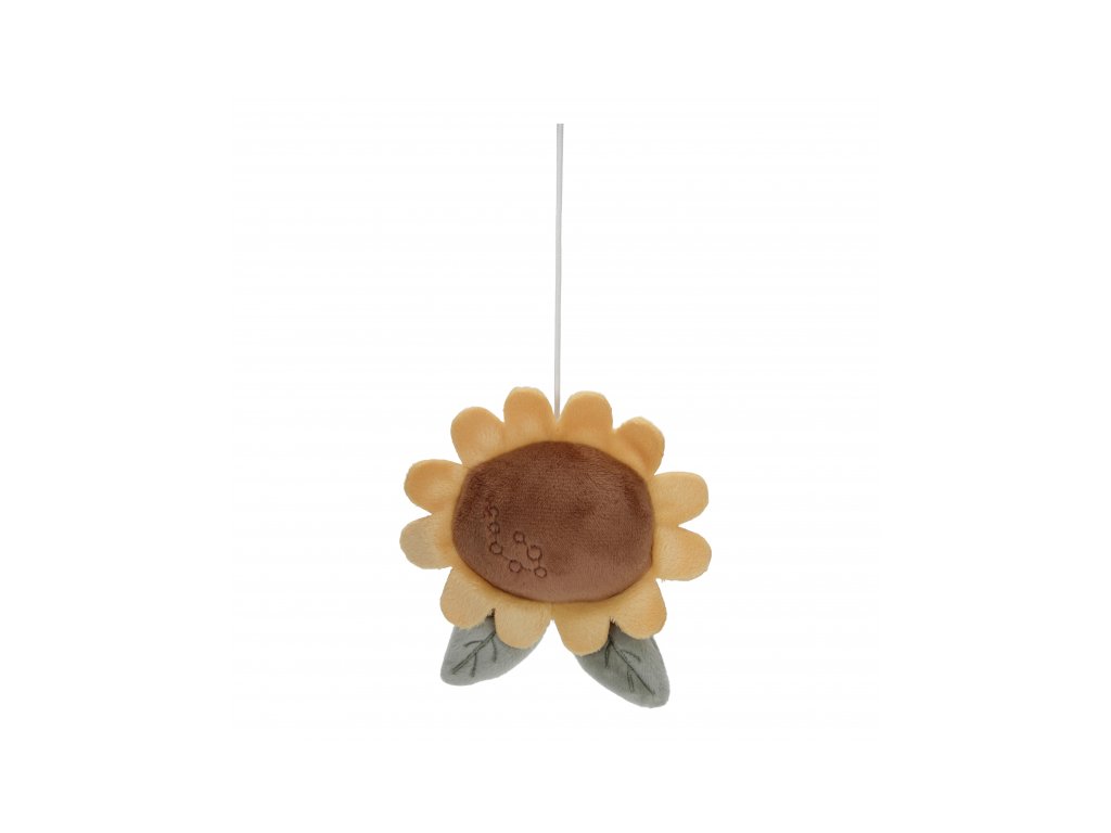 - Sada piatich hračiek: Otáčajúce sa plyšové hračky v podobe ovečky, sliepočky, kravičky, slnečnice a domčeka priťahujú pozornosť.