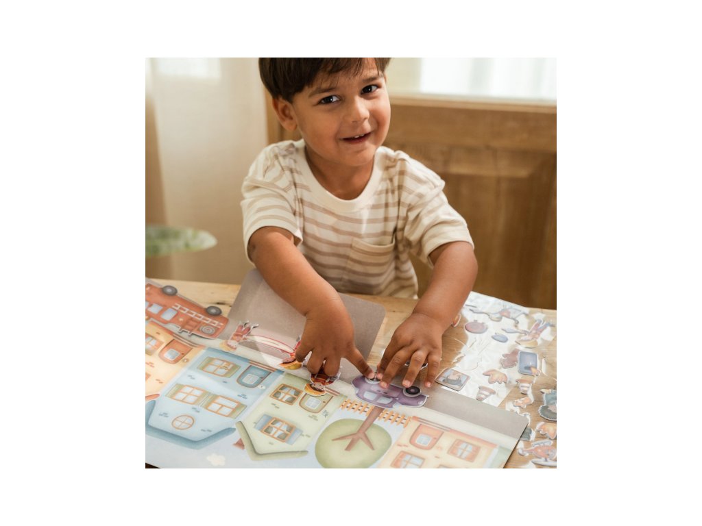 Vďaka svojej ľahkosti a skladnosti je táto knižka skvelým spoločníkom na dlhé cesty autom, návštevy u lekára či do reštaurácie. Deti sa zabavia tvorením nových scén na uliciach mesta, zatiaľ čo vy si môžete v pokoji vychutnať chvíľu pre seba. 3D efekt samolepiek dodáva hre hmatový rozmer, ktorý deti milujú.