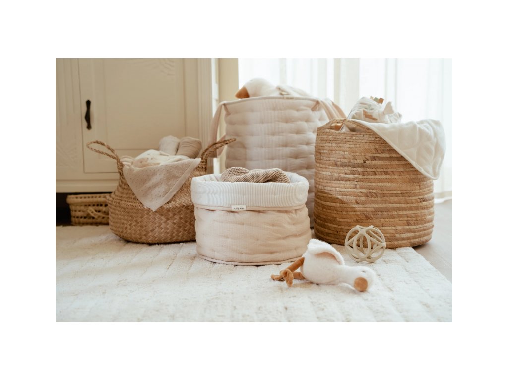 Little Dutch Košík textilný obojstranný veľký Pure Soft Beige Stripe