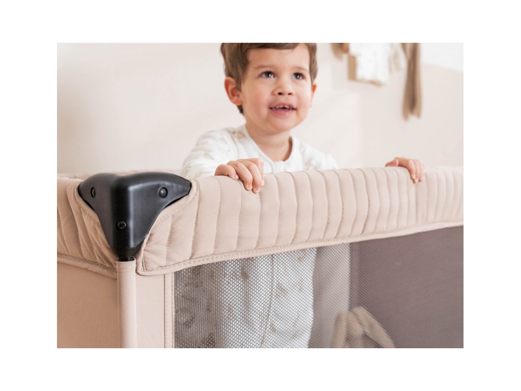 Vnútorný priestor postieľky s rozmermi 125 x 65 cm poskytuje dostatok miesta na spánok aj hranie. Neutrálna béžová farba pôsobí upokojujúco a ľahko sa zladí s akýmkoľvek interiérom. Vďaka nízkej hmotnosti 9,6 kg je manipulácia s postieľkou nenáročná aj pre mamičky.
