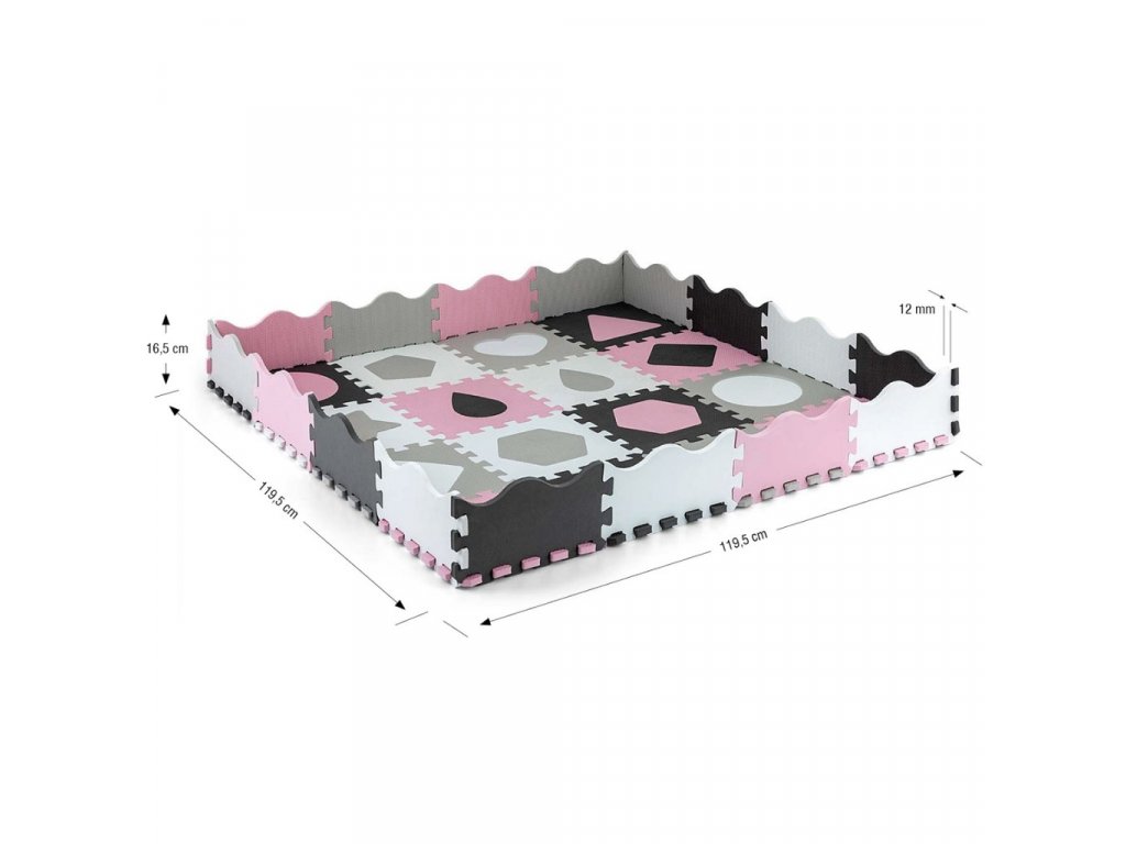 Vynikajúca penová puzzle hracia podlaha v príjemnej farebnej kombinácii. Jednotlivé diely majú hrúbku 12 mm, čo zabezpečuje spoľahlivé zapadnutie do seba. Povrchová úprava má jemnú štruktúru, čo sa postará o väčšiu stabilitu pre deti pri hre. Podložka je zároveň nepremokavá. Jednotlivé diely obsahujú naviac rôzne geometrické tvary, ktoré sa dajú vyberať a slúžiť na hru.