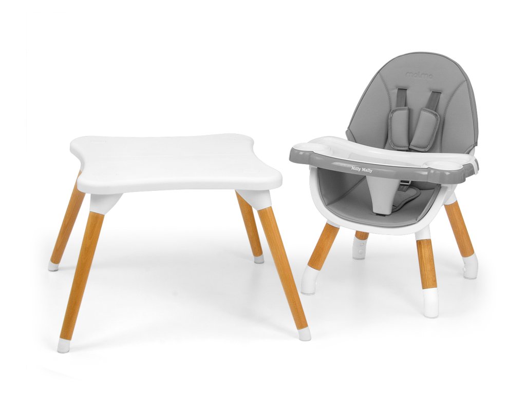 Malmo má stabilnú a ľahkú konštrukciu, vďaka ktorej sa ľahko presúva. Nohy stoličky majú gumené nožičky, ktoré zabraňujú posúvaniu sedadla a chránia podlahu pred poškriabaním. Táto detská stolička určite osloví rodičov. Možnosti použitia, ktoré kombinuje, umožňujú zaradiť ho medzi produkty z rodiny Grow Up.