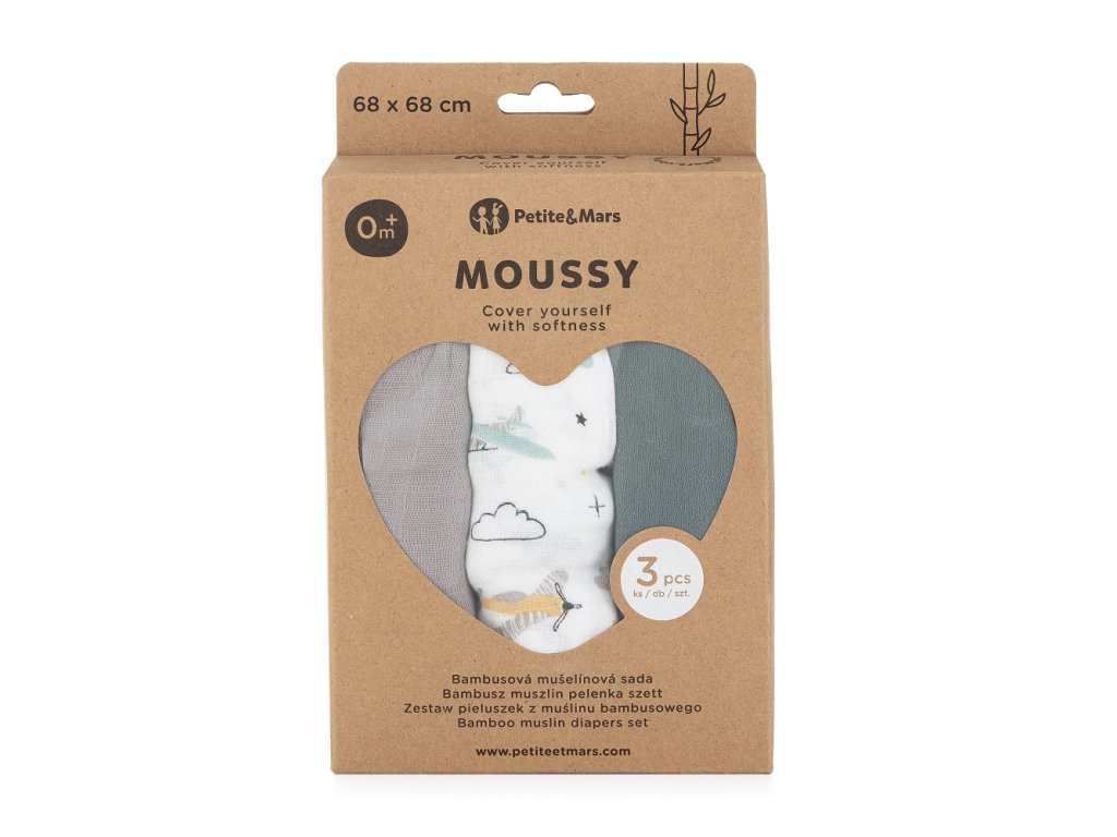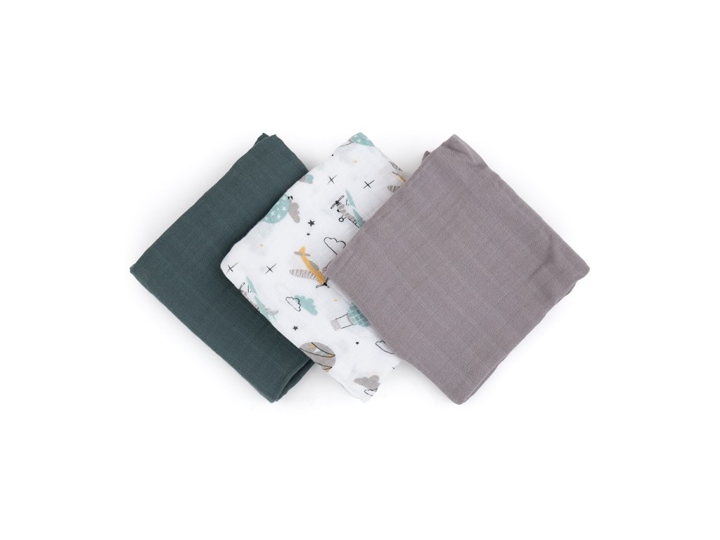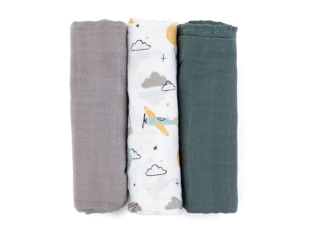 Mušelínové plienky Petite&Mars Moussy Grey Planes 3 kusy
