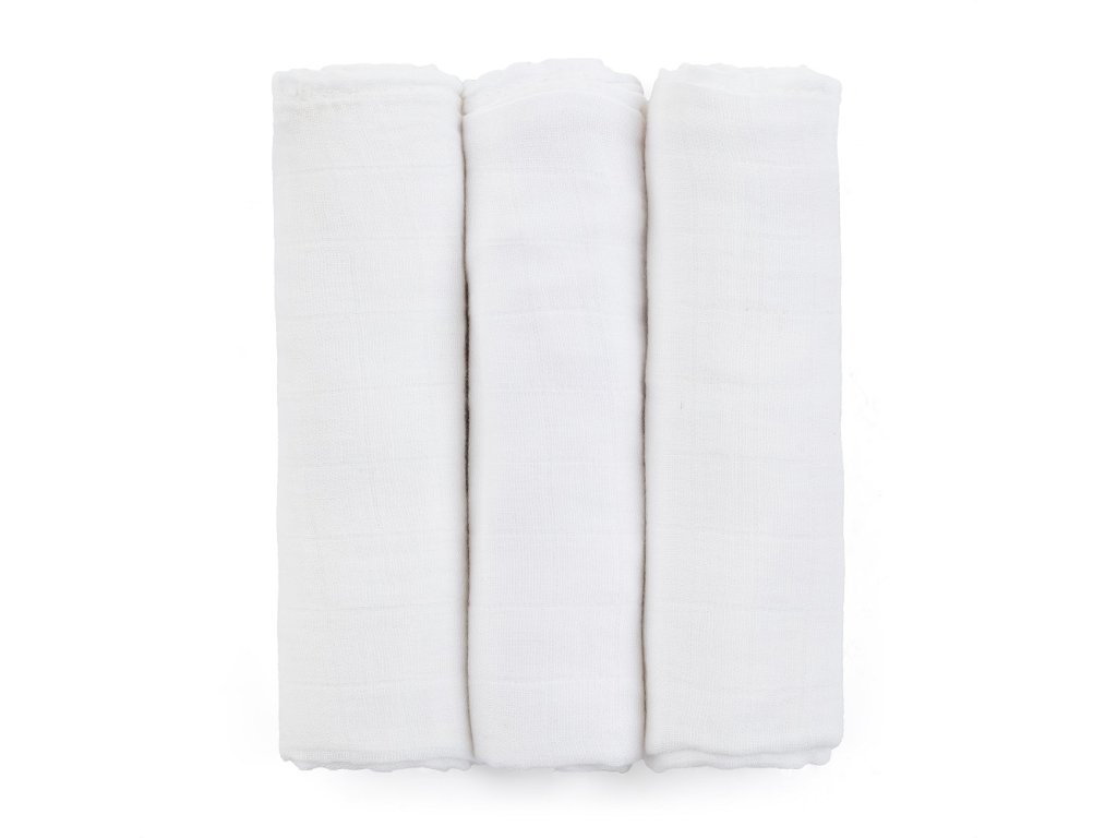 3 kvalitné mušelínové plienky v bielej farbe s rozmerom 68x68 cm.