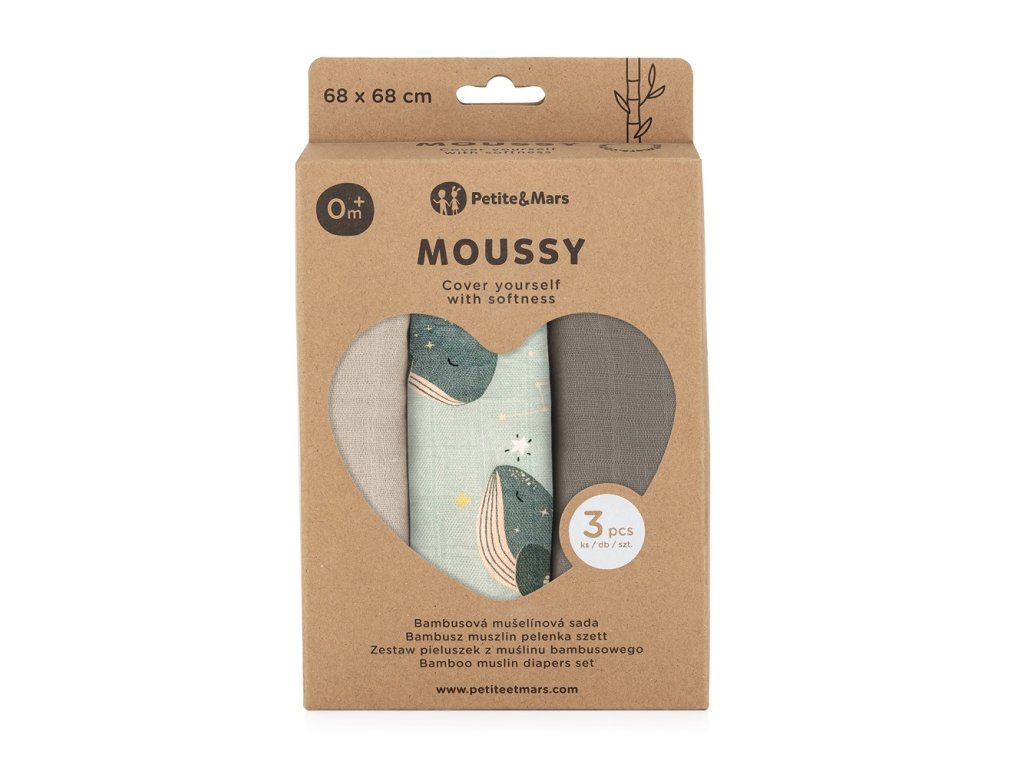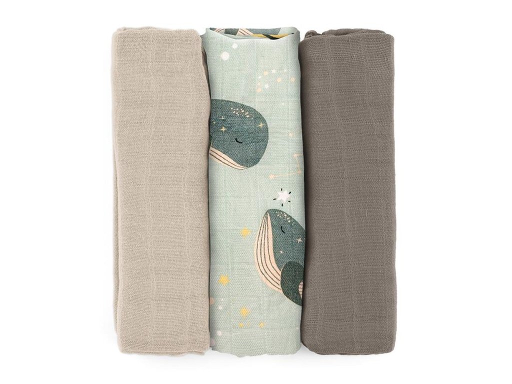 Mušelínové plienky Petite&Mars Moussy Whale Song 3 kusy