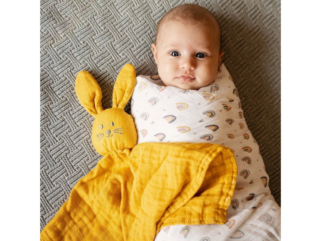 Mäkkučký mušelínový zajko Hugo má jednu tajnú záľubu – najradšej zo všetkého sa vyvaľuje v postieľke a spinká. Je to skvelý kamarát a hračka na spanie pre tie najmenšie detičky, ktoré potrebujú cítiť teplo a nehu. Hugo sa rád túli, dokáže dieťatko upokojiť po náročnom dni a vďaka nemu sa bábätko v postieľke nikdy nebude cítiť osamote.