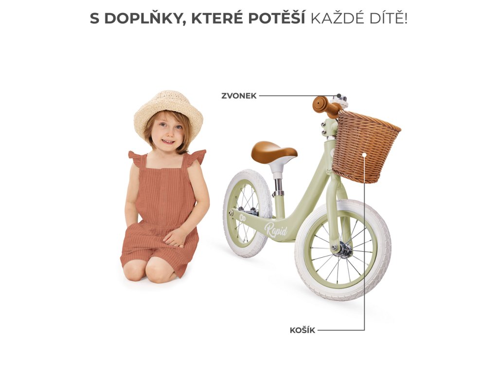 - Praktický košík: Súčasťou je krásny košík na riadidlá, do ktorého si dieťa môže odložiť obľúbenú hračku alebo fľašu.