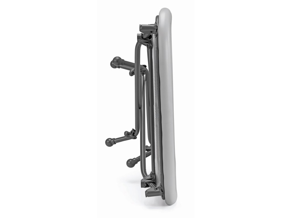 Áno, vďaka centrálnemu kĺbu ju zložíte na plocho, čo uľahčuje prenos medzi miestnosťami alebo prevoz v kufri auta.