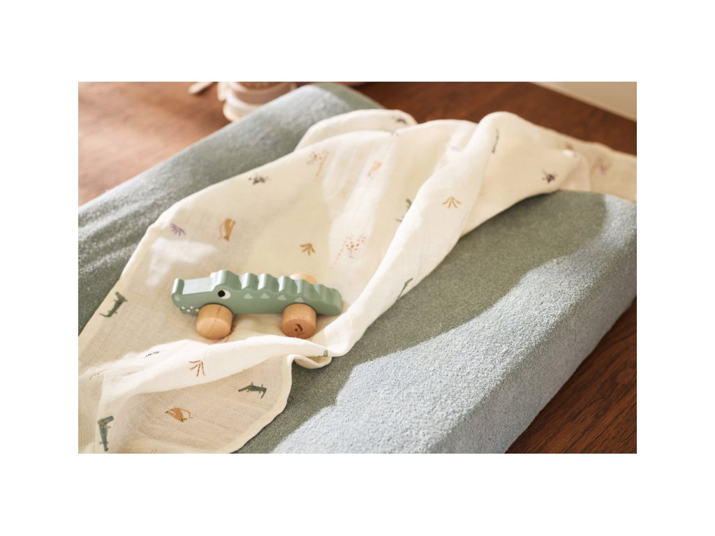 Odporúčame prať na teplote do 60 °C s použitím jemného pracieho prostriedku určeného pre deti. Žehlenie nie je nutné, pretože mušelín je prirodzene krčivý a po praní sa stáva ešte mäkším.