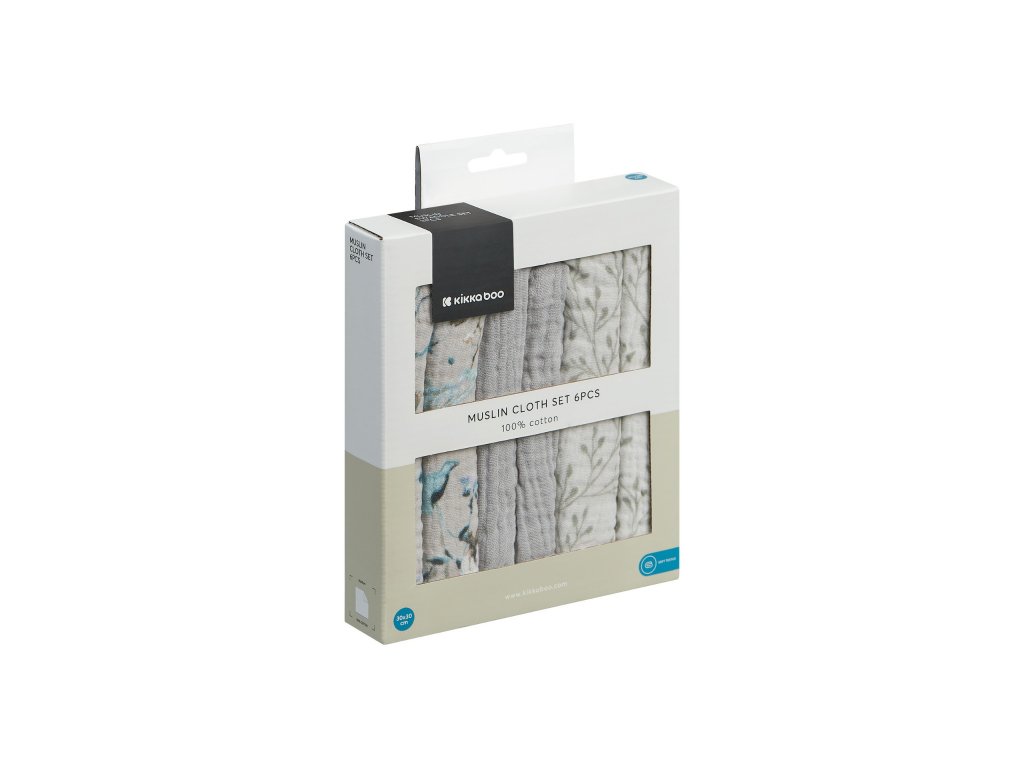 Plienky mušelínové KikkaBoo 30x30 cm 6 kusov Dreamy Fields Grey