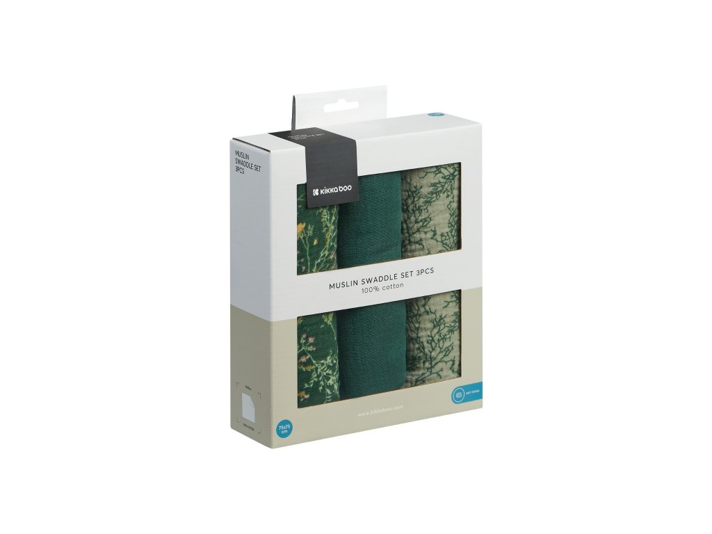 Plienky mušelínové KikkaBoo 75x75 cm 3 kusy Secret Garden Green