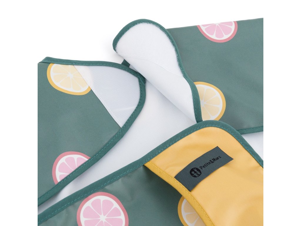 Kŕmenie a kreatívne hry môžu byť niekedy poriadne chaotické. S podbradníkom Petite&Mars Ben s dlhým rukávom v štýlovom dizajne Beige Citrus však udržíte čistotu za každých okolností, či už ide o prvé príkrmy alebo maľovanie farbami.
