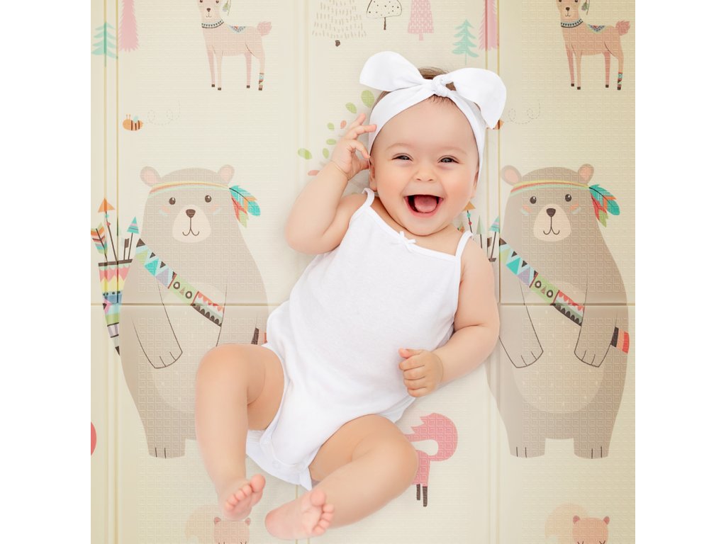 Skladacia detská podložka z kvalitnej peny. Povrch podložky je s jemnou textúrou - tá zabezpečuje protišmykové vlastnosti...
