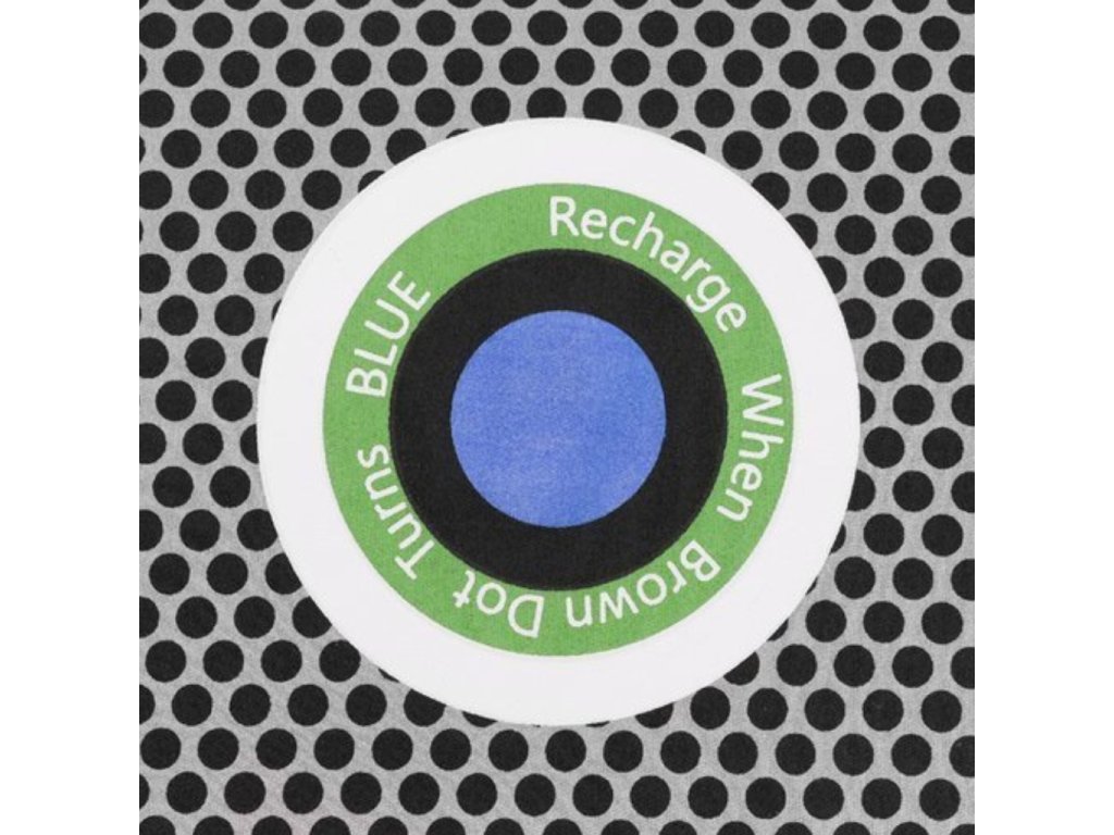 V strede absorbera sa nachádza farebný indikátor vlhkosti: