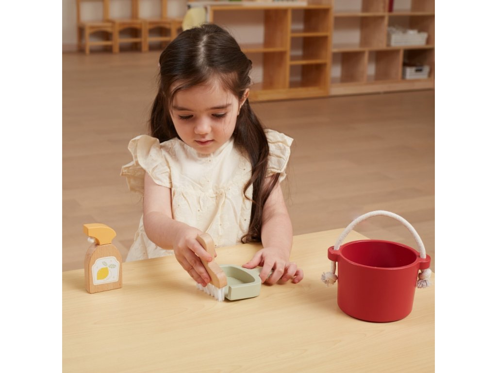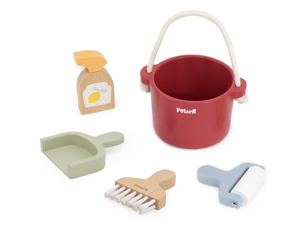 Podporte rozvoj zručností a zmyslu pre zodpovednosť u vášho dieťaťa s drevenou sadou na upratovanie "PolarB drevená sada hračiek na upratovanie"!