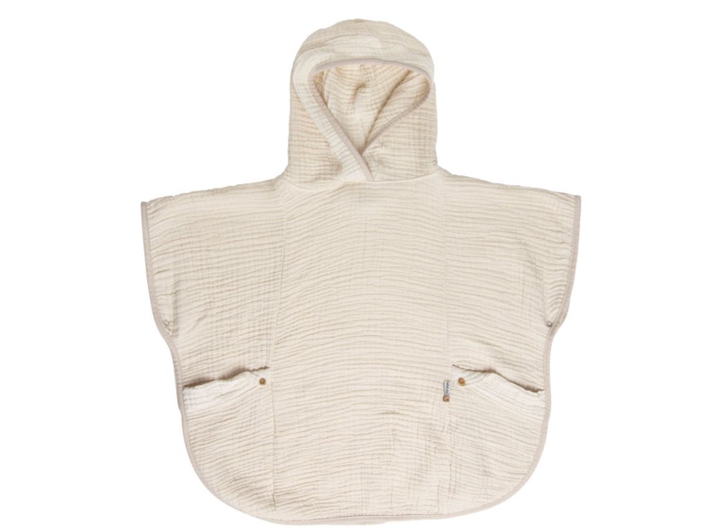 Pončo má voľný strih, ktorý sa prirodzene prispôsobuje rastu dieťaťa od dojčenského veku až po batoľa.