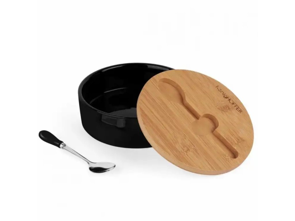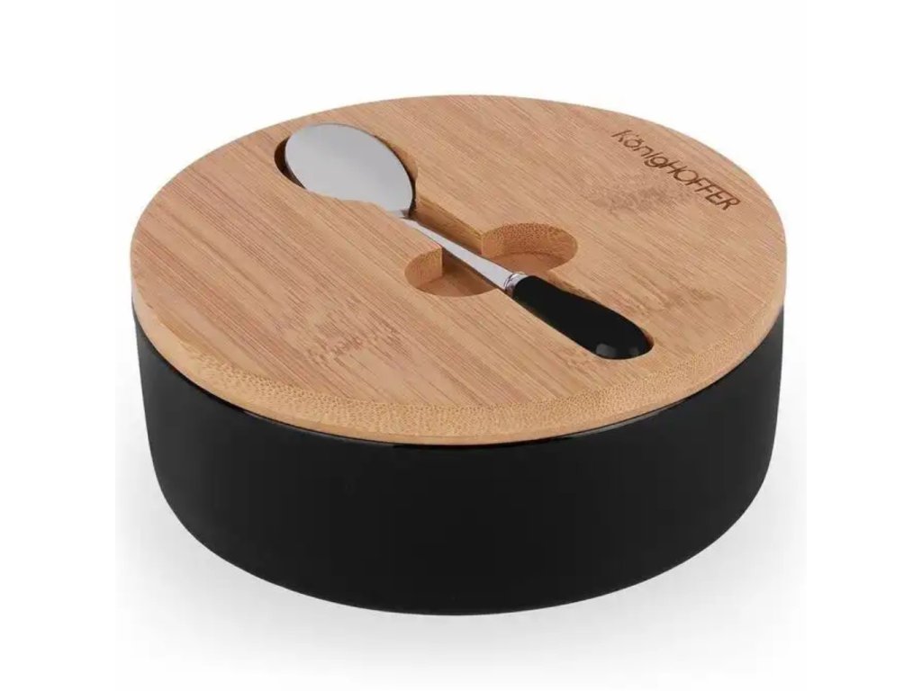 Základom cukorničky je kvalitný čierny porcelán, ktorý je hygienický, neabsorbuje pachy a veľmi ľahko sa udržiava. Kontrastným prvkom je vrchnák z prírodného bambusového dreva. Bambus je nielen ekologický a trvácny materiál, ale svojou textúrou vnáša do kuchyne teplo a pocit domova.