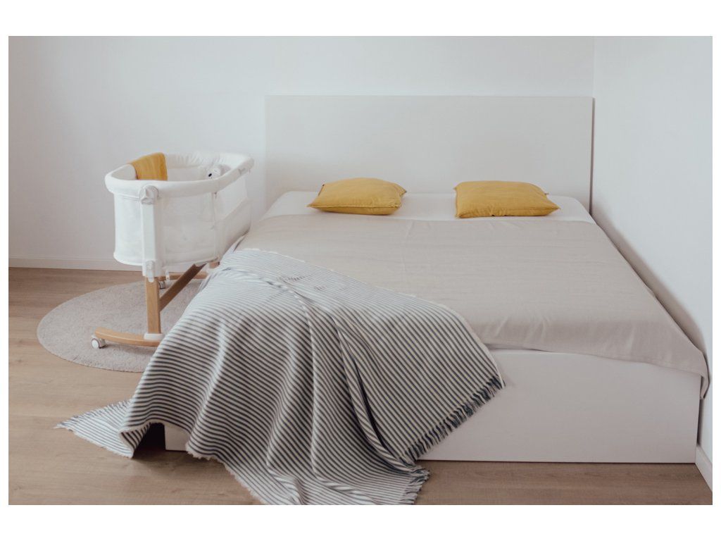 - 2v1 dizajn: Slúži ako samostatne stojaca postieľka alebo prídavná postieľka k rodičovskému lôžku.