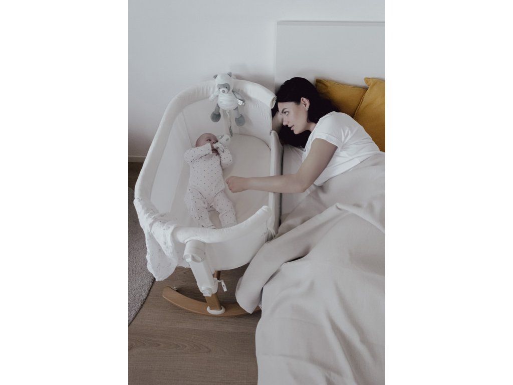 Pre pohodlie bábätka je postieľka vybavená komfortným matracom, ktorého poťah môžete v prípade potreby jednoducho vyzliecť a oprať. Vďaka piatim výškovým polohám postieľku ľahko prispôsobíte výške vášho matraca (v rozsahu 56,5 – 68,5 cm), čím eliminujete potrebu vstávania k dieťatku počas noci. Mäkučký plyšový okraj dodáva postieľke extra pocit útulnosti.