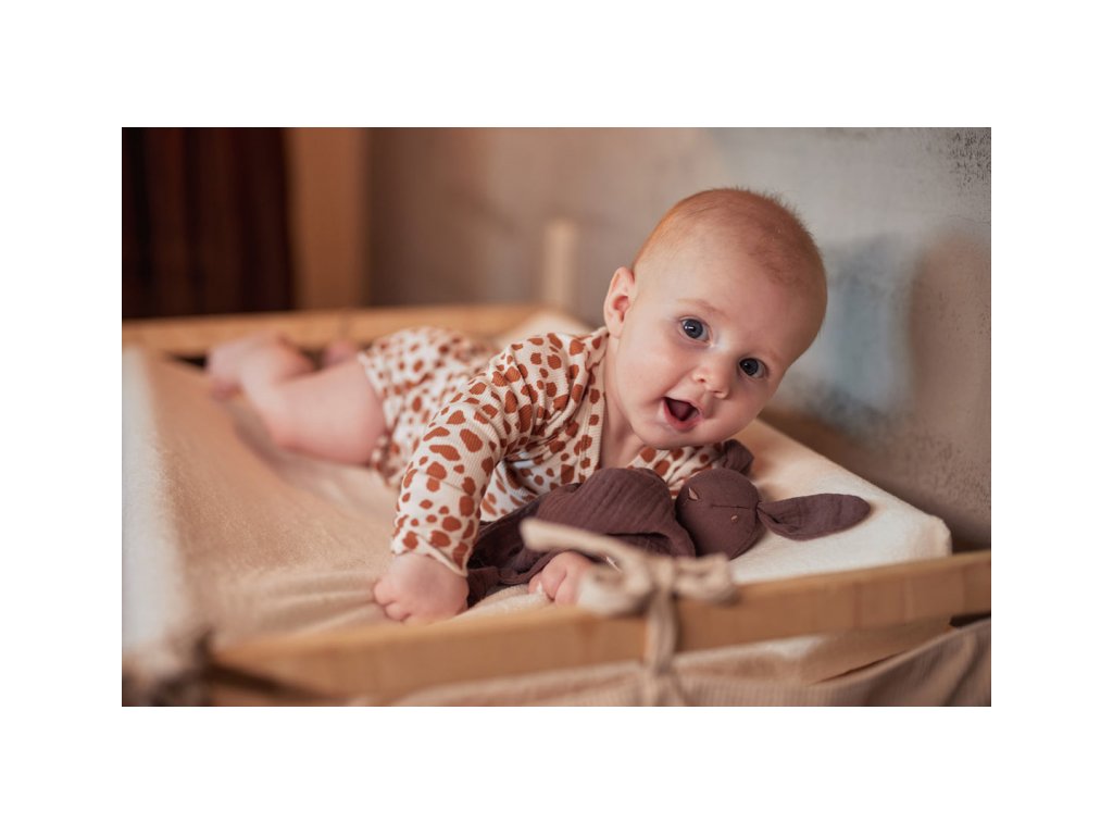 Froté povrch je nielen mäkký na dotyk, ale aj výborne absorbuje vlhkosť. Vaše dieťatko sa tak bude cítiť v bezpečí a teple, čo pomáha udržiavať ho počas prebaľovania pokojné. Farby Ivory a Nougat navyše pôsobia upokojujúco a krásne doladia dizajn každej detskej izby.