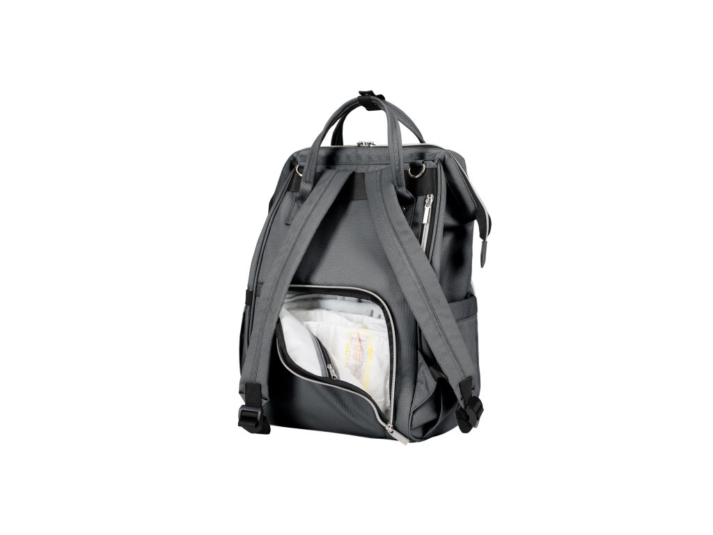 Štýlový prebaľovací batoh umožňuje prehľadné uloženie všetkého potrebného na prechádzky a výlety s vašim dieťaťom. Klipy umožňujú zavesenie na madlá kočíka.Vnútri batohu nájdete množstvo vreciek a priehradok aj vodeodolné vrecko na uloženie vlhkých predmetov. Široký spôsob otvárania batohu uľahčuje orientáciu v uloženom obsahu. Na vonkajšej strane nájdete vrecká s uzatváraním na zips aj vrecko na uloženie fľaše. Termoizolačné vrecká na fľaše pomáhajú udržať nápoje či mlieko dlhšiu dobu v optimálnej teplote. Súčasťou plecniaka je aj prebaľovacia podložka.