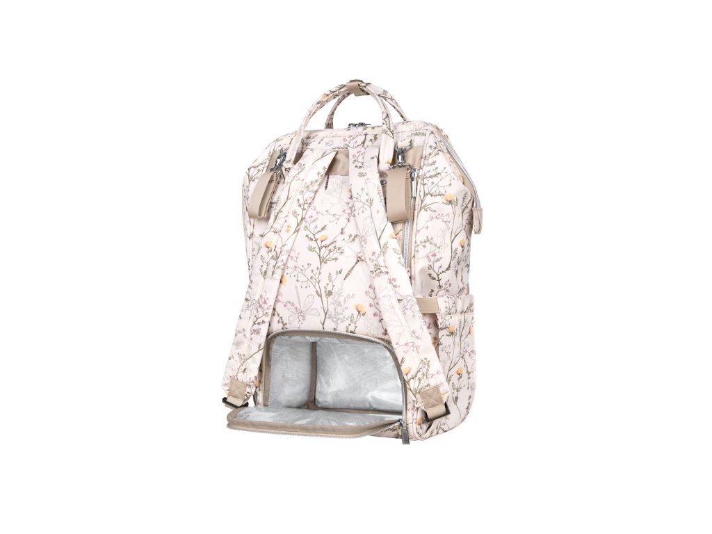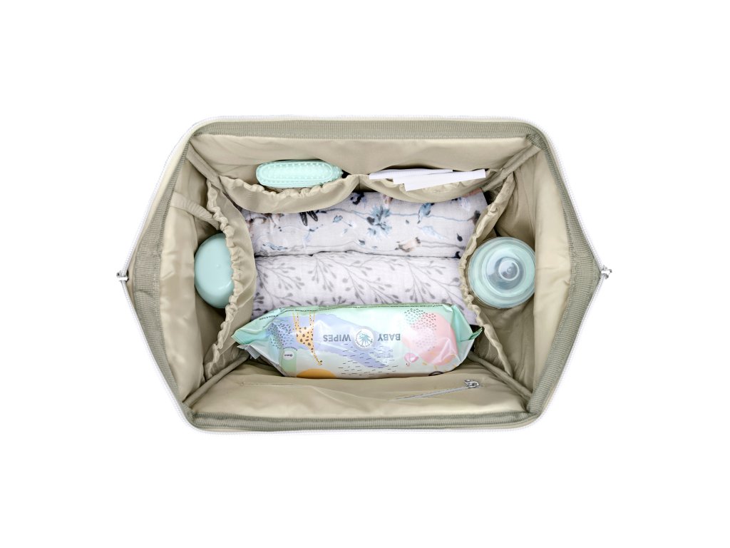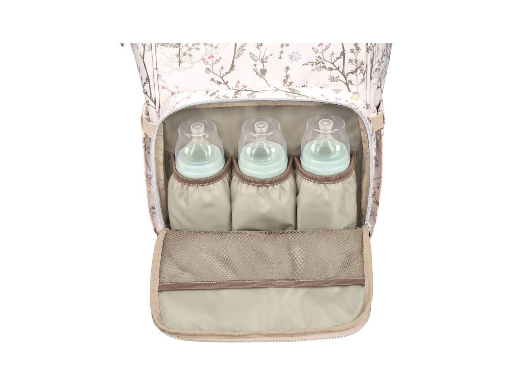 Štýlový prebaľovací batoh umožňuje prehľadné uloženie všetkého potrebného na prechádzky a výlety s vašim dieťaťom. Klipy umožňujú zavesenie na madlá kočíka.Vnútri batohu nájdete množstvo vreciek a priehradok aj vodeodolné vrecko na uloženie vlhkých predmetov. Široký spôsob otvárania batohu uľahčuje orientáciu v uloženom obsahu. Na vonkajšej strane nájdete vrecká s uzatváraním na zips aj vrecko na uloženie fľaše. Termoizolačné vrecká na fľaše pomáhajú udržať nápoje či mlieko dlhšiu dobu v optimálnej teplote. Súčasťou batoha je aj prebaľovacia podložka.