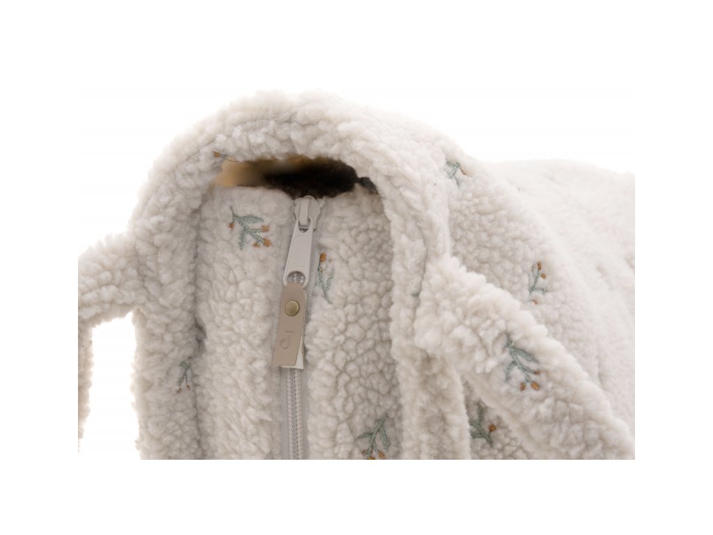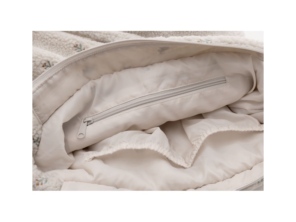 Prebaľovacia taška z príjemného plyšového materiálu s jemnou výšivkou as podšívkou ponúka množstvo vnútorných vreciek pre prehľadné usporiadanie všetkého potrebného na prechádzkach a výletoch s vašim dieťaťom. Súčasťou tašky je aj praktická prebaľovacia podložka. Dlhé držadlá umožňujú nosenie cez rameno aj zavesenie na rukoväť kočíka. Taška sa uzatvára na zips.Zloženie: 100% polyester