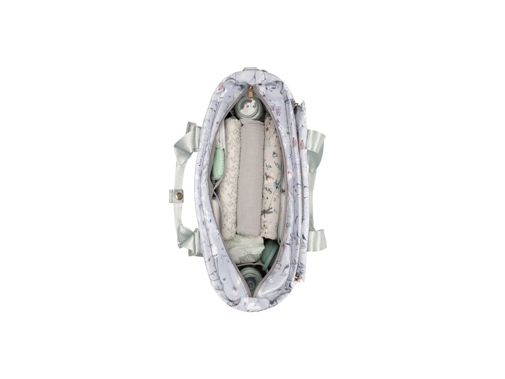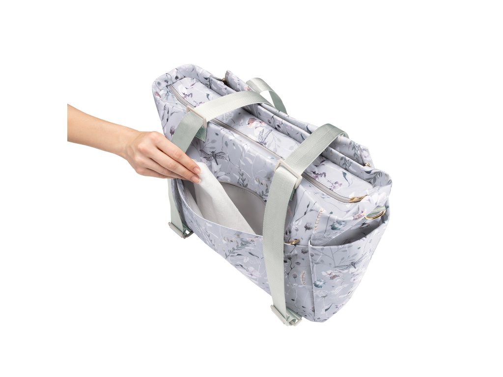 Štýlová prebaľovacia taška umožňuje prehľadné uloženie všetkého potrebného na prechádzky a výlety s vašim dieťaťom. Nastaviteľné držadlá umožňujú nosiť tašku aj ako batoh na chrbte. Klipy umožňujú zavesenie na madlá kočíka.Vnútri tašky nájdete množstvo vreciek a priehradok aj vodeodolné vrecko na uloženie vlhkých predmetov. Široký spôsob otvárania tašky uľahčuje orientáciu v uloženom obsahu. Na vonkajšej strane nájdete vrecká na uloženie fľaše. Termoizolačné vrecká na fľaše pomáhajú udržať nápoje či mlieko dlhšiu dobu v optimálnej teplote. Predné vyklápacie vrecko obsahuje integrovanú prebaľovaciu podložku a po otvorení umožňuje aj prístup do vnútorného priestoru tašky.