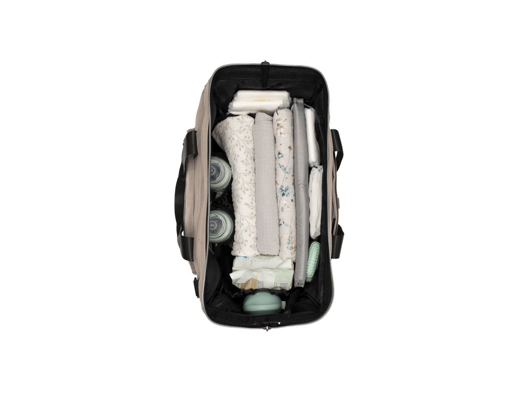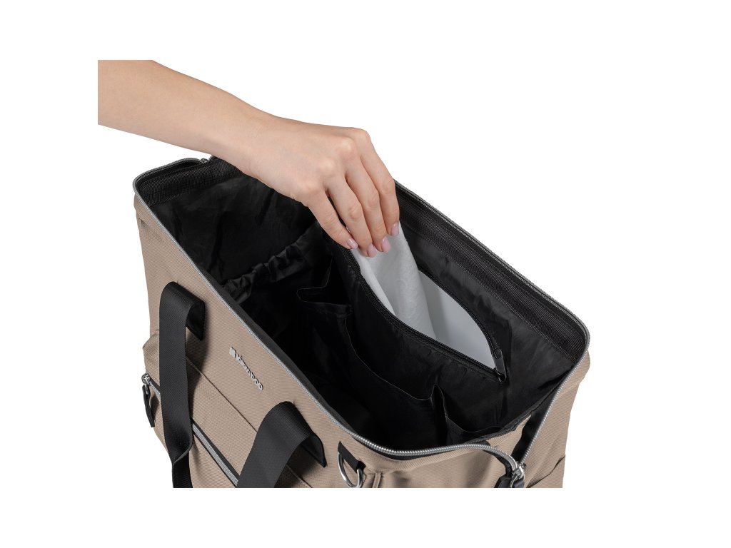 Praktická a štýlová prebaľovacia taška umožňuje prehľadné uloženie všetkého potrebného na prechádzky a výlety s vašim dieťaťom. Klipy umožňujú zavesenie na madlá kočíka.Vnútri tašky nájdete množstvo vreciek a priehradok, vodeodolné vrecko na uloženie vlhkých predmetov a dve termoizolačné vrecká na fľaše. Široký spôsob otvárania tašky uľahčuje orientáciu v uloženom obsahu. Na vonkajšej strane nájdete vrecká s uzatváraním na zips aj vrecko na uloženie fľaše. Súčasťou tašky je aj odnímateľné puzdro na drobnosti a prebaľovacia podložka.