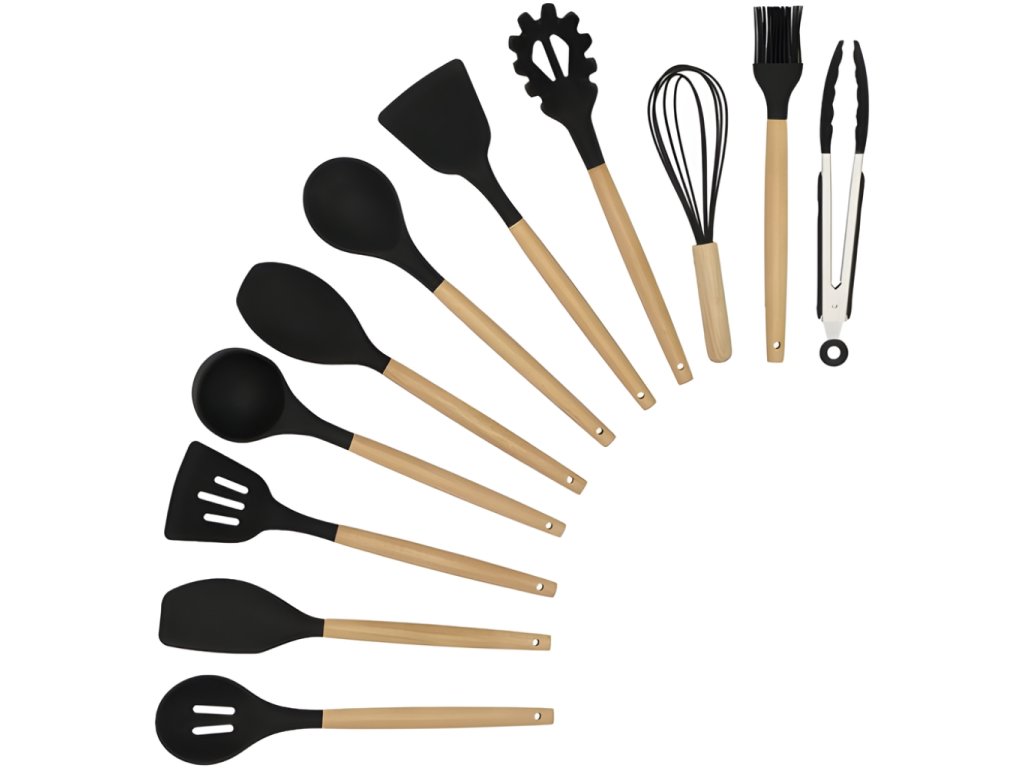 Sada kuchynskeho náradia 12 kusov | drevo/silikón