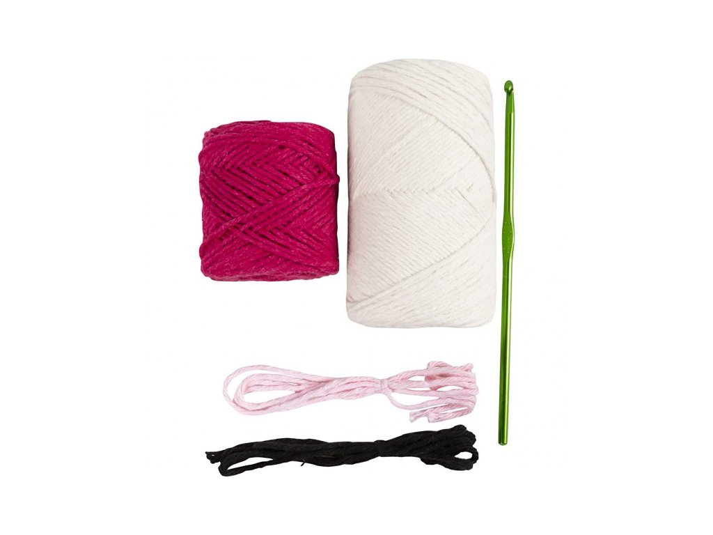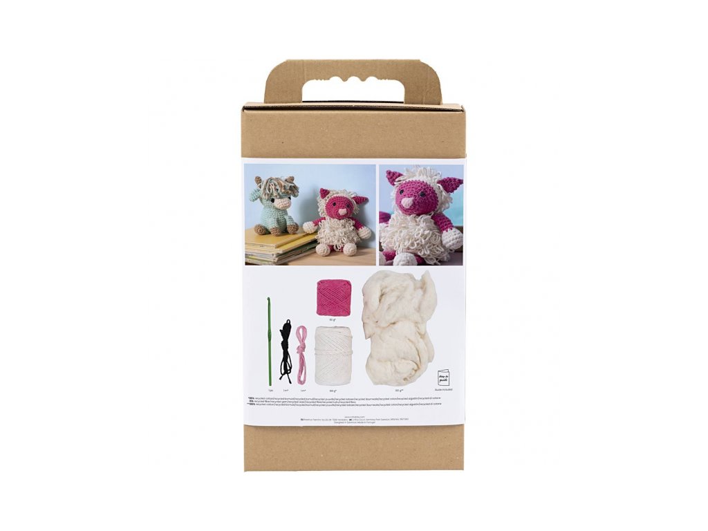 Balenie obsahuje priadzu, výplň, návod a háčik. Na finálne zošitie dielov budete potrebovať tupú ihlu na vlnu, ktorá nie je súčasťou setu.