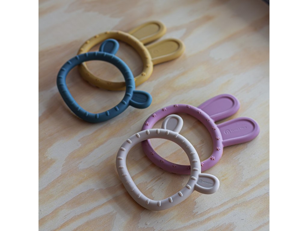 Hryzačka Bunny spĺňa najprísnejšie bezpečnostné štandardy. Jej bezpečný tvar je navrhnutý tak, aby predchádzal riziku udusenia, a použitý materiál je mimoriadne odolný voči rozhryzeniu. Napriek tomu odporúčame výrobok pred každým použitím skontrolovať a v prípade poškodenia vymeniť.