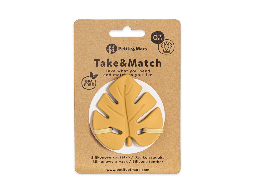 Silikónová hryzačka Petite&Mars Take&Match v tvare lístku je ideálnym pomocníkom pre bábätká počas prerezávania zúbkov....