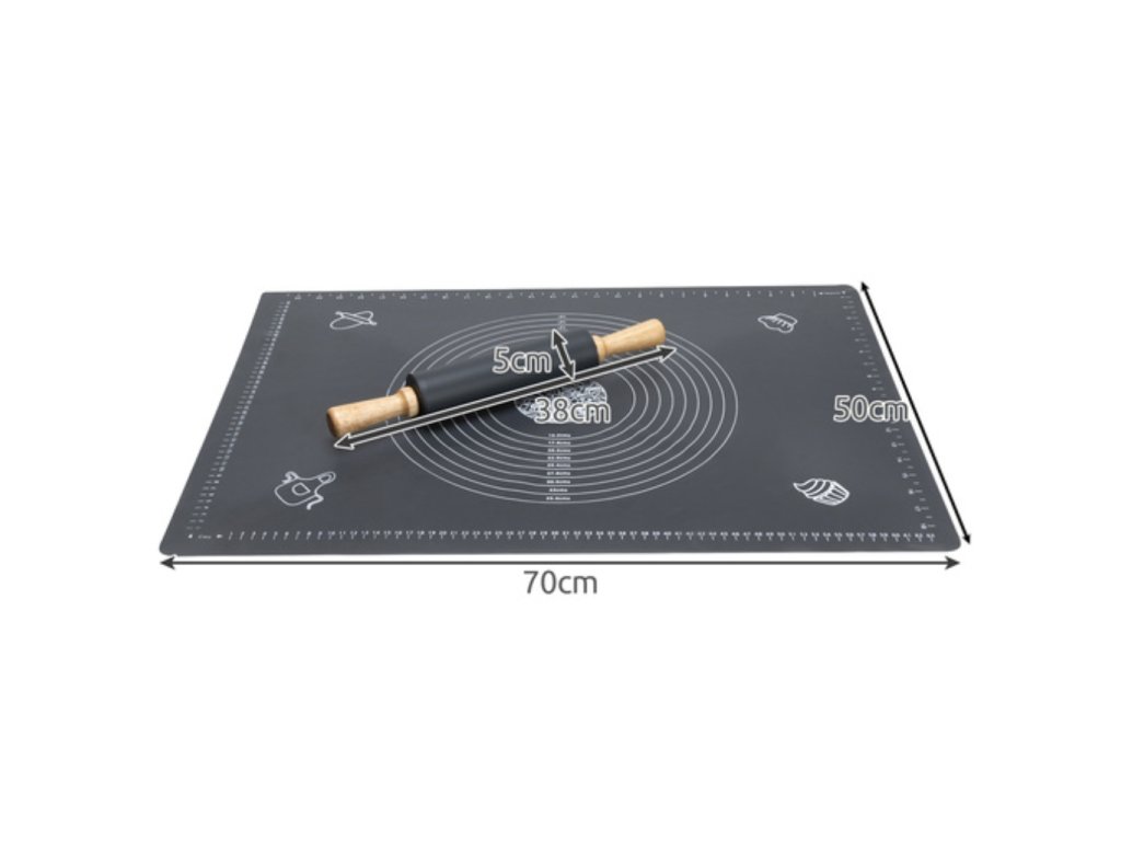 Uľahčite si prácu v kuchyni a pečte s radosťou s silikónovou podložkou na cesto a valčekom "Kruzzel silikónová podložka na cesto s valčekom Ruhhy | čierna"!