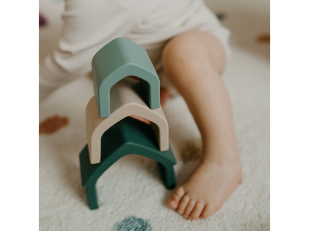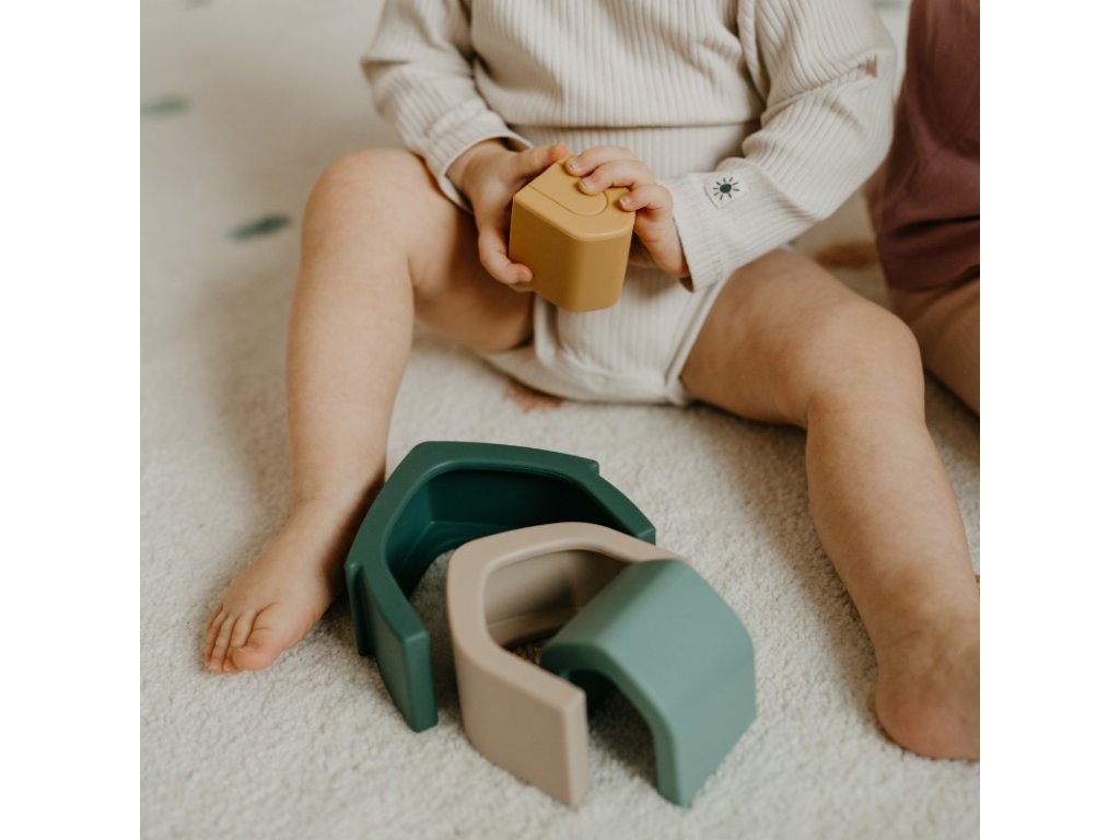 Hľadáte hračku, ktorá nielen zabaví, ale aj prirodzene podporí vývoj vášho dieťatka? Silikónový domček Petite&Mars v štýlovej farbe Intense Ochre je čarovnou bránou do sveta tvarov, farieb a objavovania. Skladanie, otáčanie a ukladanie oblúkov je pre malé rúčky výborným tréningom, ktorý spája zábavu s učením.