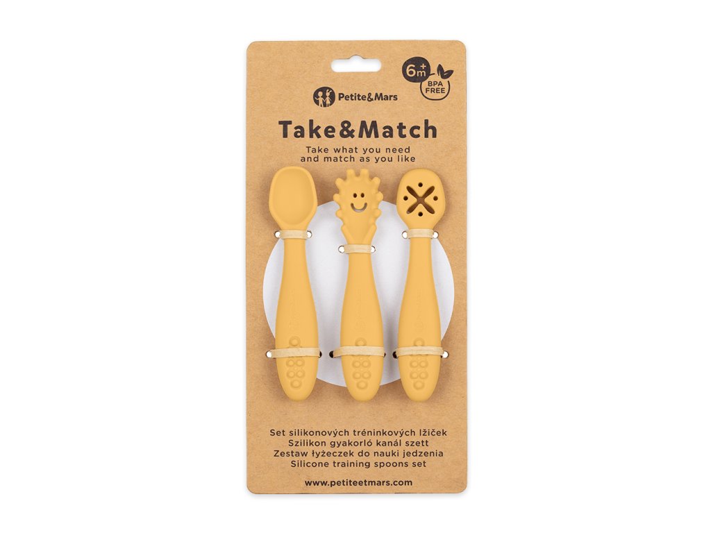 Prechod na pevnú stravu je veľkým míľnikom v živote bábätka aj rodiča. So sadou silikónových tréningových lyžičiek Petite&Mars Take&Match v štýlovej farbe Intense Ochre premeníte každé kŕmenie na hravý a estetický zážitok, ktorý podporuje motorický vývoj vášho dieťatka. Séria TAKE&MATCH vám umožňuje ľubovoľne kombinovať farby a produkty, čím si vytvoríte vlastnú unikátnu kolekciu pre vaše dieťatko.