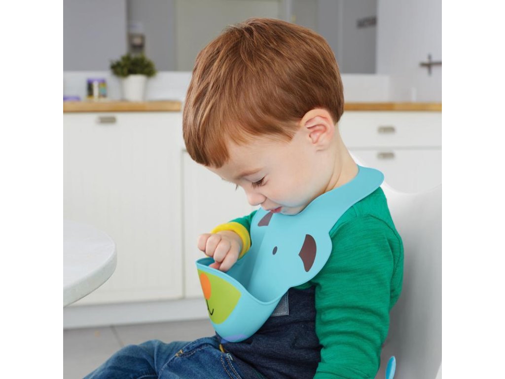 Na rozdiel od pevných plastových podbradníkov je tento model mäkký a poddajný. Po dojedení ho môžete jednoducho zrolovať, čo z neho robí ideálneho spoločníka na cestovanie, návštevy reštaurácií či výlety. Šetrí miesto v prebaľovacej taške a je okamžite pripravený na ďalšie použitie.