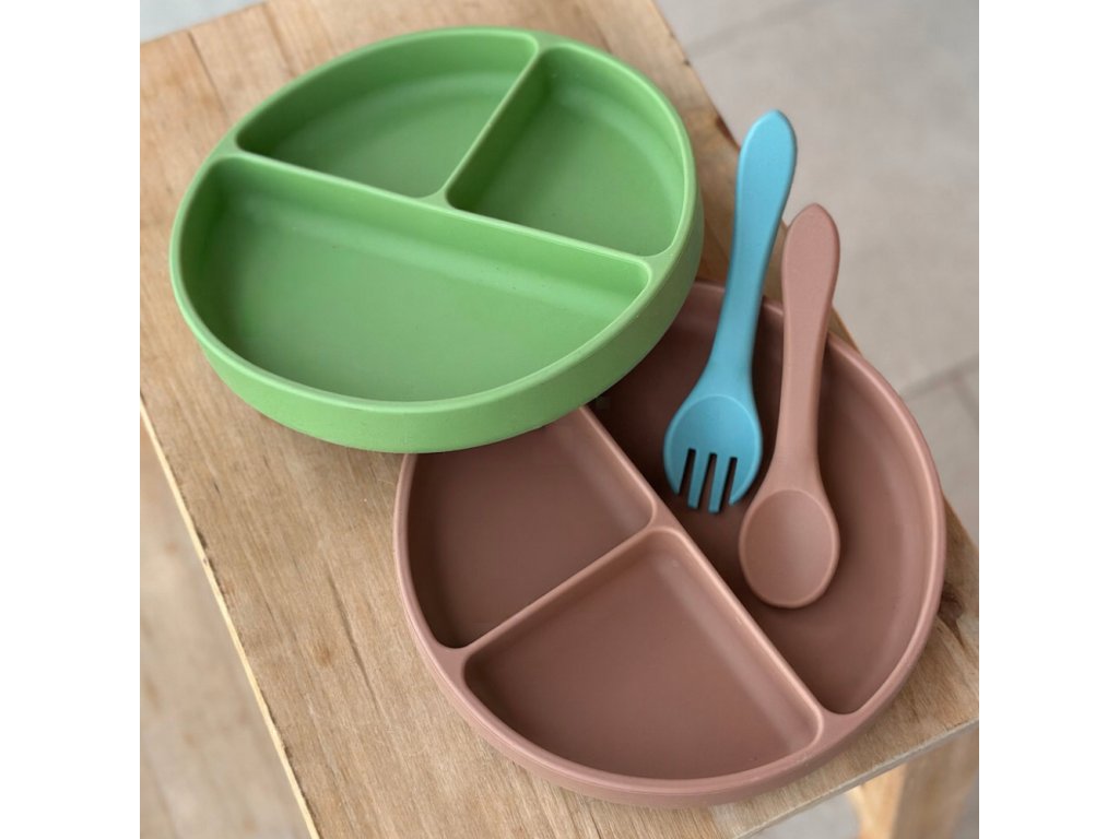 Príbor je vyrobený z odolného, no pružného potravinárskeho silikónu. Je navrhnutý tak, aby odolal bežnému používaniu, avšak odporúčame produkt pravidelne kontrolovať a pri známkach poškodenia ho vymeniť.