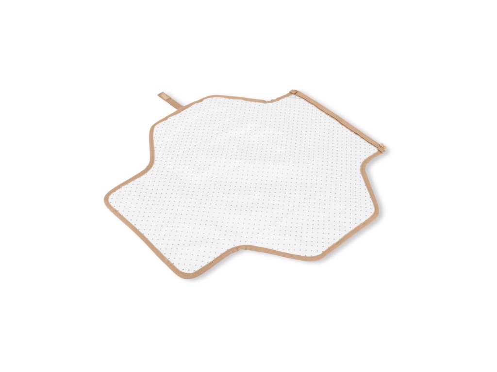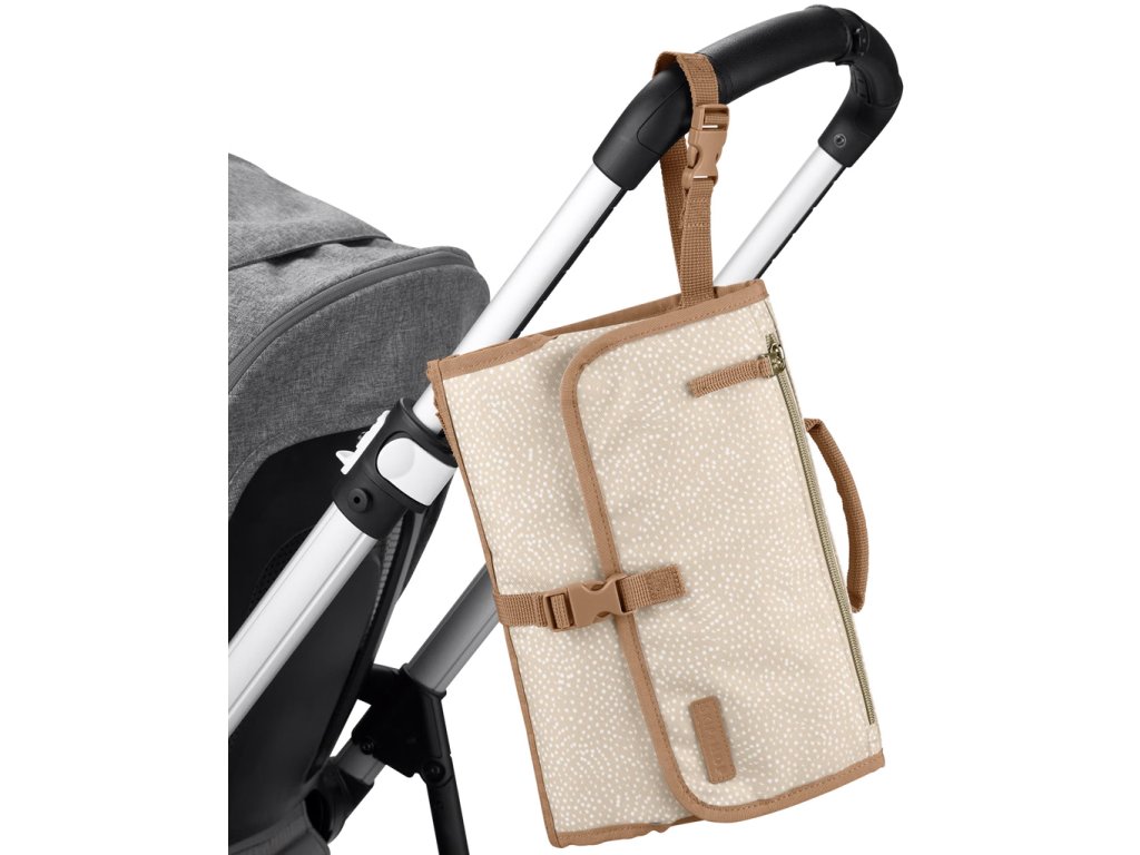 Mäkká polstrovaná podložka chráni dieťa pred chladom a tvrdým povrchom. Ak potrebujete len prebaľovaciu podložku alebo len taštičku, vďaka praktickému zipsu ich môžete od seba jednoducho oddeliť. Dizajn Beige swirl dot je nadčasový a vkusne doplní vašu výbavu pre bábätko.