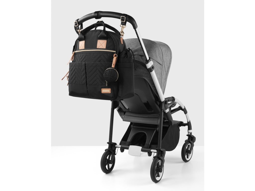 Skip Hop dbá na to, aby boli vaše prechádzky nielen štýlové, ale hlavne bezpečné. Taška je vybavená špeciálnymi popruhmi, ktoré umožňujú pevné a stabilné pripevnenie na rukoväť kočíka, čím zabraňujú jej skĺznutiu. Všetky materiály sú starostlivo testované a polstrovaná prebaľovacia podložka poskytuje čistý a hygienický povrch pre vaše dieťatko kdekoľvek na cestách.