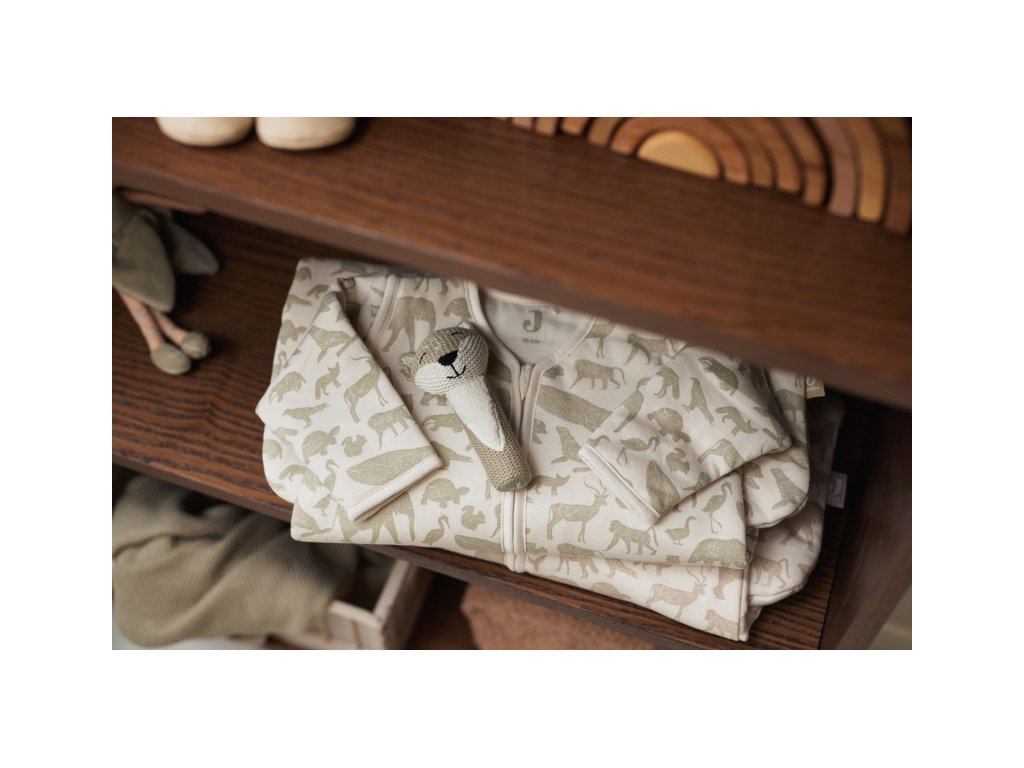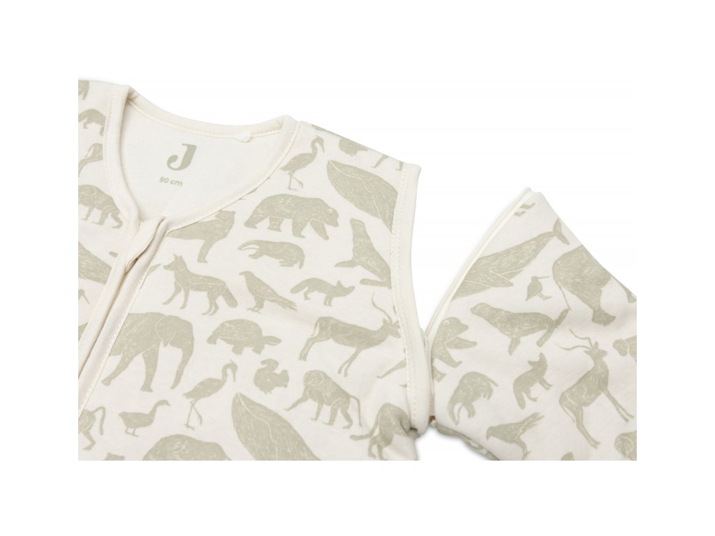 Praktický spací vak s oddeliteľnými rukávmi ponúka variabilitu pri použití podľa počasia a teploty v miestnosti. Vďaka jemnej výplni je vhodný na použitie namiesto perinky. Spací vak zaistí, že sa dieťa v noci neodkope a bude tak po celú dobu spánku v pohodlí a teple bez rizika prechladnutia. Kryté zipsy v prieramkoch umožňujú ľahké oddelenie rukávov, pokiaľ chcete spací vak používať v teplejšom prostredí bez rukávov. Zips na prednej strane umožňuje ľahké vloženie dieťaťa do spacieho vaku a prebaľovanie počas spania.