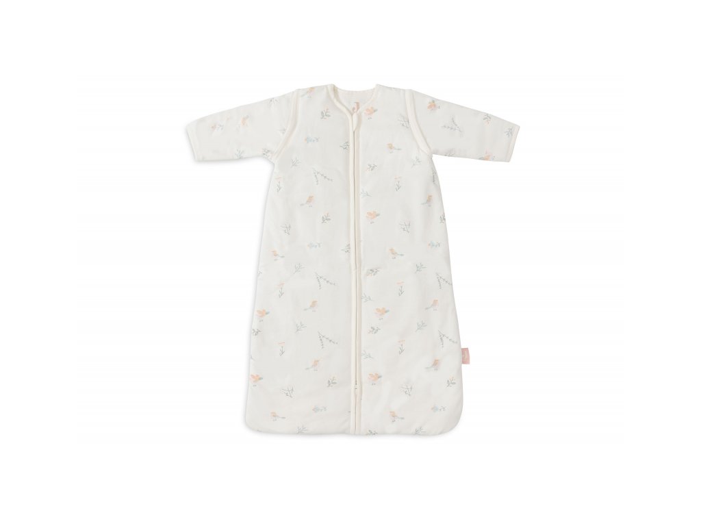 Praktický spací vak s oddeliteľnými rukávmi ponúka variabilitu pri použití podľa počasia a teploty v miestnosti. Vďaka jemnej výplni je vhodný na použitie namiesto perinky. Spací vak zaistí, že sa dieťa v noci neodkope a bude tak po celú dobu spánku v pohodlí a teple bez rizika prechladnutia. Kryté zipsy v prieramkoch umožňujú ľahké oddelenie rukávov, pokiaľ chcete spací vak používať v teplejšom prostredí bez rukávov. Zips na prednej strane umožňuje ľahké vloženie dieťaťa do spacieho vaku a prebaľovanie počas spania.