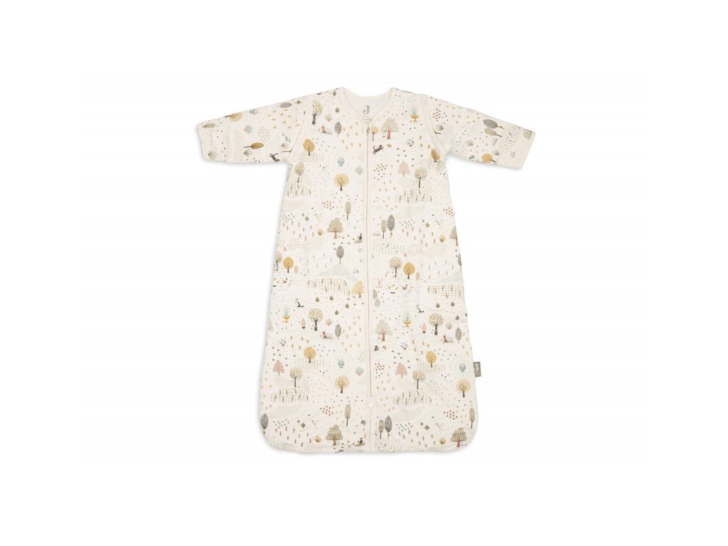 Praktický spací vak s oddeliteľnými rukávmi ponúka variabilitu pri použití podľa počasia a teploty v miestnosti. Vďaka jemnej výplni je vhodný na použitie namiesto perinky. Spací vak zaistí, že sa dieťa v noci neodkope a bude tak po celú dobu spánku v pohodlí a teple bez rizika prechladnutia. Kryté zipsy v prieramkoch umožňujú ľahké oddelenie rukávov, pokiaľ chcete spací vak používať v teplejšom prostredí bez rukávov. Zips na prednej strane umožňuje ľahké vloženie dieťaťa do spacieho vaku a prebaľovanie počas spania.