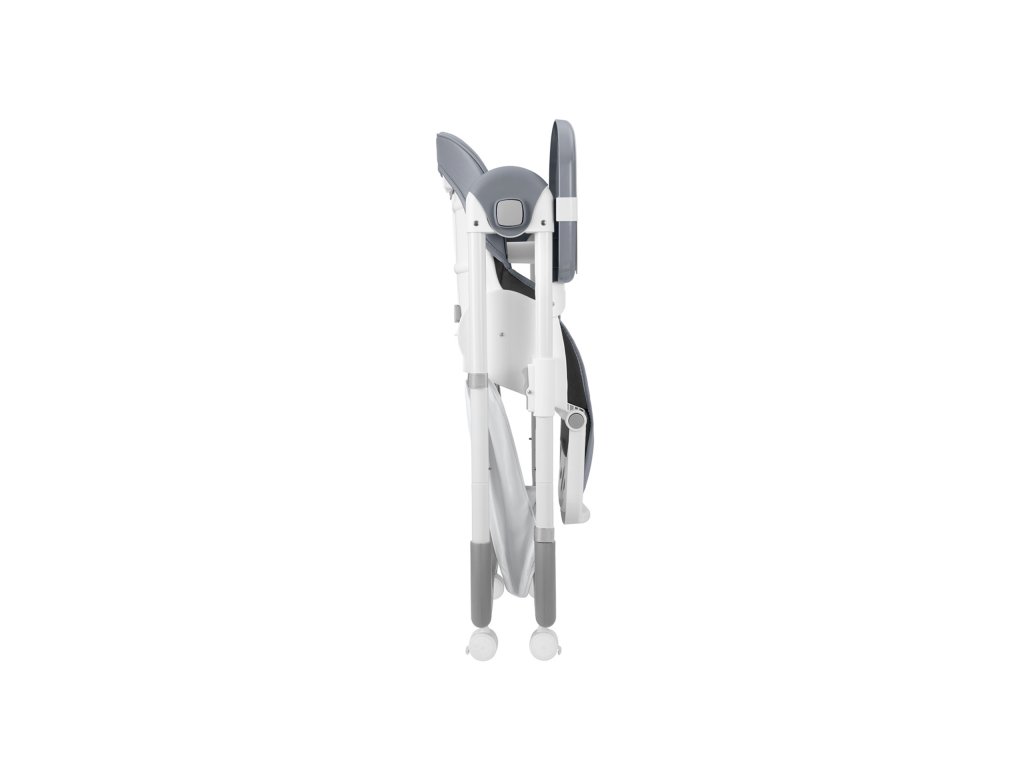 Stolička Spicy+ myslí aj na rodičov. Dvojitý odnímateľný pultík disponuje držiakom na hrnček a tromi polohami nastavenia hĺbky. Priestranný úložný košík v spodnej časti je ideálnym miestom na uloženie podbradníkov, hračiek či vlhčených utierok. Keď stoličku práve nepoužívate, jednoducho ju zložíte do kompaktných rozmerov pre úsporu miesta.