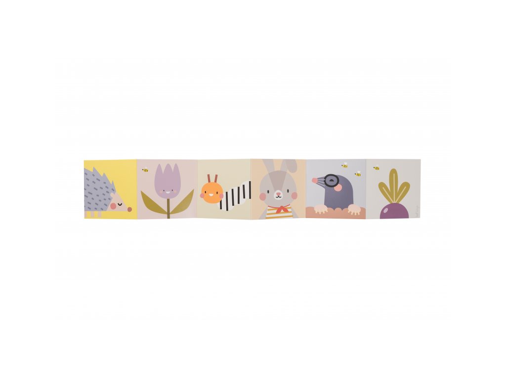 súčasťou balenia je aj krásne obojstranné leporelo s ilustráciami pre dve vývojové štádiá dieťaťa (vysoko kontrastné jednoduché obrázky pre deti od narodenia, farebné výrazné obrázky pre deti od cca 3 mesiacov)