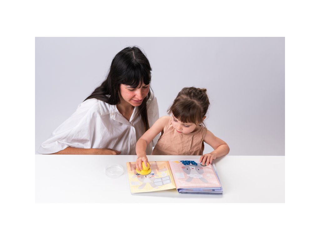 Áno, materiál je netoxický a certifikovaný ako bezpečný pre batoľatá. Napriek tomu odporúčame hru pod dohľadom rodiča, aby sa dieťa naučilo správne používať pečiatku.