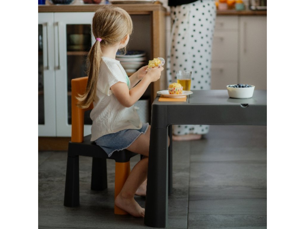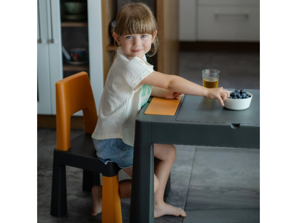 Vytvorte deťom priestor pre tvorivé aktivity so súpravou "Teggi detský stolík a stoličky grafit/mustard"!