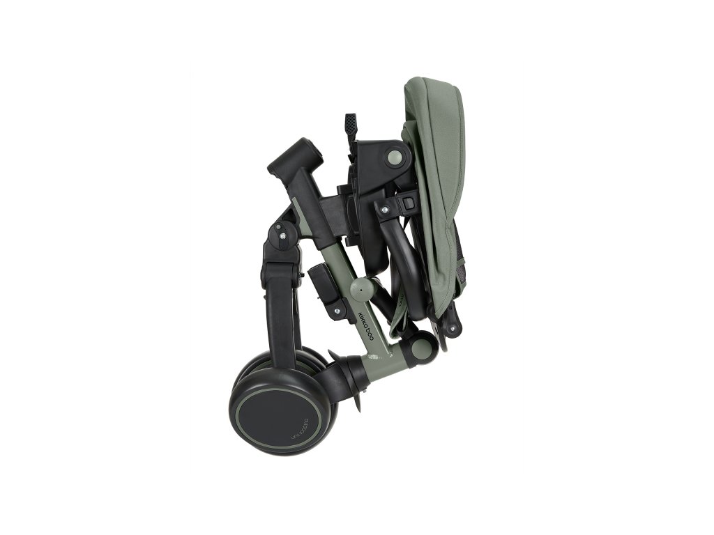 Áno, mechanizmus zloženia jedným tlačidlom zmenší trojkolku na rozmery 55 x 49 x 38 cm, čo je ideálne pre uskladnenie v kufri auta alebo v menších bytoch.